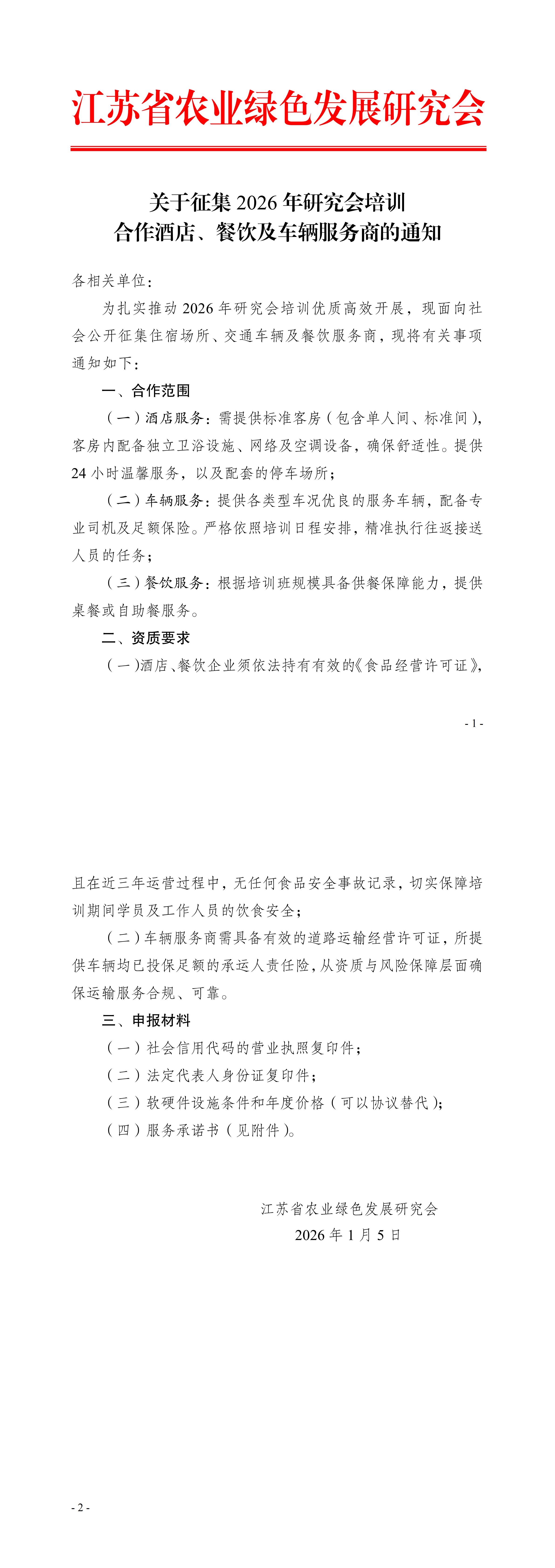【服务征集】关于征集2026年研究会培训合作酒店、餐饮及车辆服务商的通知
